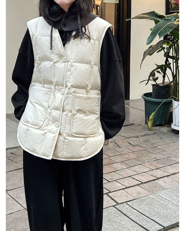*モデル身長163cm/着用サイズM 【Size】 M 肩幅46cm/胸囲118cm/身丈73cm L 肩幅48cm/胸囲122cm/身丈74cm 【Color】 White/Black 【Material】 ポリエステル100% 中綿:ダウン90%/フェザー10% ■お届けについて こちらの商品は海外より直接発送となる為、ご注文完了から2~4週間前後で発送致します。 (タイミングによっては 商品在庫切れにより注文キャンセルとさせていただく恐れもございますので、予めご了承くださいませ。) ■注意事項 ・商品を使用前に、タグ等に記載されている「洗濯表示」を必ずご確認ください。 ・手作業による計測のため実際のサイズと1~3cm程度の誤差がある場合がございます。 ・こちらは海外製品のため縫製が甘いことやしわがついていることがありますが、重大な不良品に該当しない場合返品対象外となります。 ・仕入れ工場が変更になることがあるため、商品の使用が若干異なる場合がございます。 ・商品写真は照明やお使いのスクリーンの設定によって実物の素材感や色味とは違って見える場合がございます。 ・イメージ違いやサイズ交換等、お客様都合による返品・交換は原則承っておりません。 −−−−−−−−−−−−−−−− ご購入前にこちらをお読みください https://leonie.official.ec/about −−−−−−−−−−−−−−−−−−−−−−−− 新作などその他の商品はTOPページをご覧ください https://leonie.official.ec/ −−−−−−−−−−−−−−−−−−−−−−−− 人気の商品を集めたHOTアイテムはこちら https://leonie.official.ec/categories/4475668 −−−−−−−−−−−−−−−−−−−−−−−− [O506]
