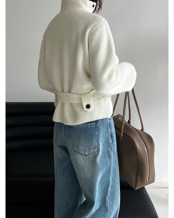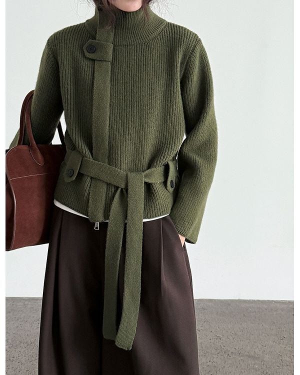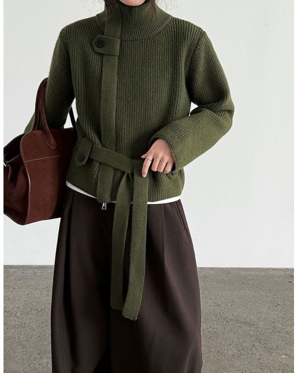 Belted Highneck Cardigan