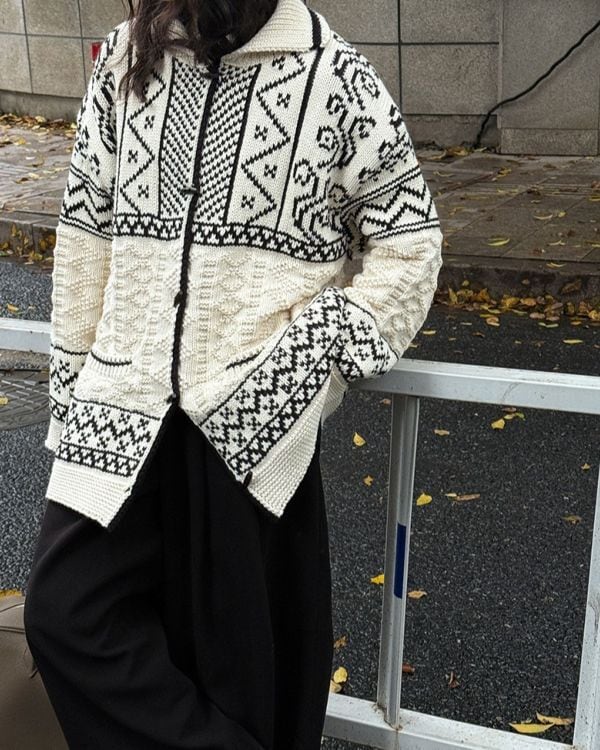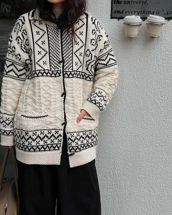 Patterned Toggle Knit Cardigan