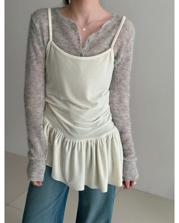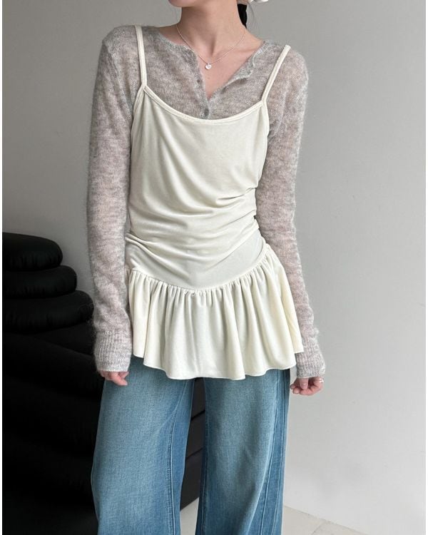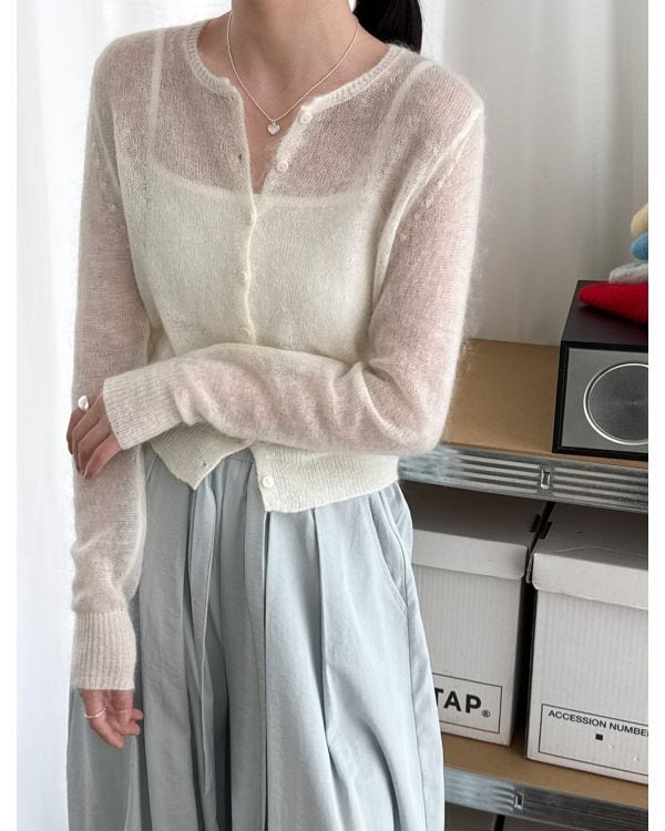 *モデル身長162m/着用サイズF 【Size】 F 肩幅39cm/胸囲90cm/袖丈67cm/身丈51cm 【Color】 Ivory/Cream/Mint/Blue/Red/Gray 【Material】 ナイロン38.8%/ウール31.4%/モヘア29.8% ■お届けについて こちらの商品は海外より直接発送となる為、ご注文完了から2~4週間前後で発送致します。 (タイミングによっては 商品在庫切れにより注文キャンセルとさせていただく恐れもございますので、予めご了承くださいませ。) ■注意事項 ・商品を使用前に、タグ等に記載されている「洗濯表示」を必ずご確認ください。 ・手作業による計測のため実際のサイズと1~3cm程度の誤差がある場合がございます。 ・こちらは海外製品のため縫製が甘いことやしわがついていることがありますが、重大な不良品に該当しない場合返品対象外となります。 ・仕入れ工場が変更になることがあるため、商品の使用が若干異なる場合がございます。 ・商品写真は照明やお使いのスクリーンの設定によって実物の素材感や色味とは違って見える場合がございます。 ・イメージ違いやサイズ交換等、お客様都合による返品・交換は原則承っておりません。 −−−−−−−−−−−−−−−− ご購入前にこちらをお読みください https://leonie.official.ec/about −−−−−−−−−−−−−−−−−−−−−−−− 新作などその他の商品はTOPページをご覧ください https://leonie.official.ec/ −−−−−−−−−−−−−−−−−−−−−−−− 人気の商品を集めたHOTアイテムはこちら https://leonie.official.ec/categories/4475668 −−−−−−−−−−−−−−−−−−−−−−−− [O633]