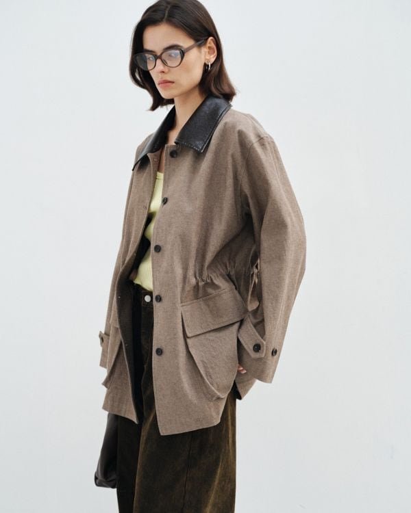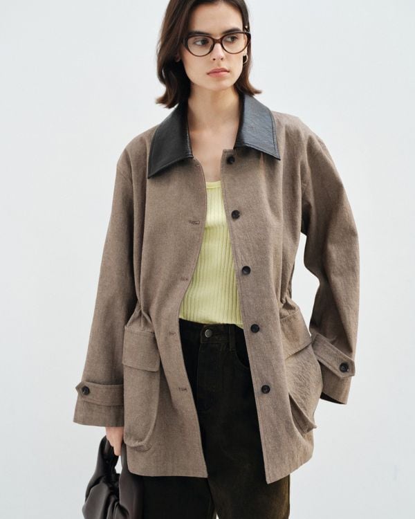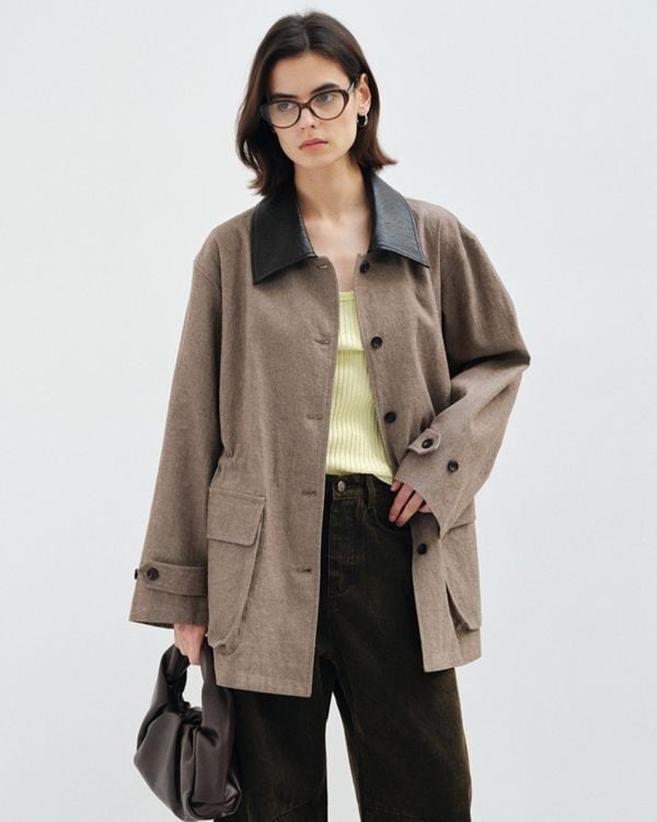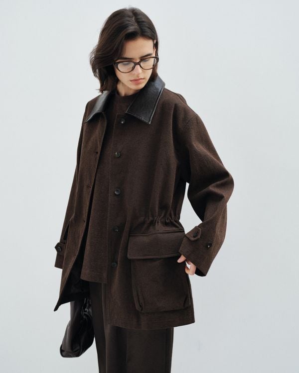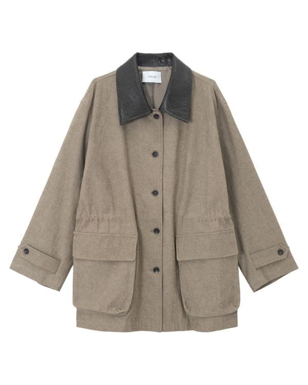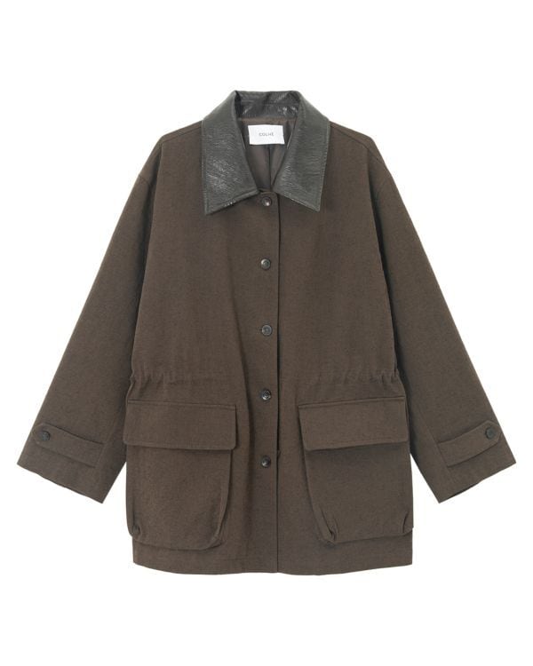Gather Leather Collar Jacket