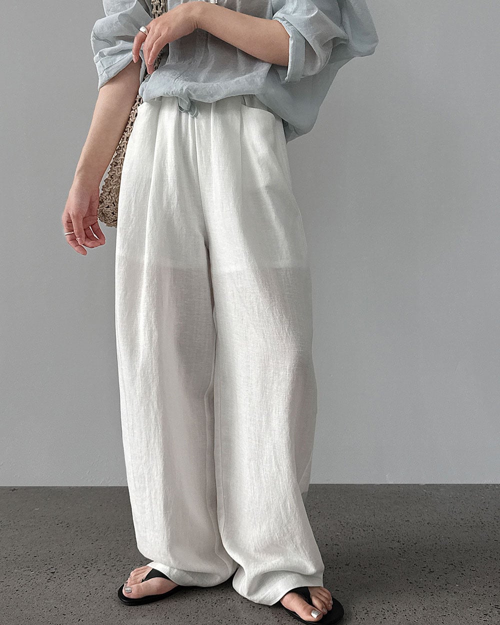 *モデル身長163m/着用サイズM 【Size】 M ウエスト66-80cm/ヒップ112cm/すそ幅50cm/パンツ丈103cm L ウエスト70-84cm/ヒップ116cm/すそ幅52cm/パンツ丈104cm 【Color】 Ivory/Beige/Blue 【Material】 再生繊維(セルロース)70%/麻30% ■お届けについて こちらの商品は海外より直接発送となる為、ご注文完了から2~4週間前後で発送致します。 (タイミングによっては 商品在庫切れにより注文キャンセルとさせていただく恐れもございますので、予めご了承くださいませ。) ■注意事項 ・商品を使用前に、タグ等に記載されている「洗濯表示」を必ずご確認ください。 ・手作業による計測のため実際のサイズと1~3cm程度の誤差がある場合がございます。 ・こちらは海外製品のため縫製が甘いことやしわがついていることがありますが、重大な不良品に該当しない場合返品対象外となります。 ・仕入れ工場が変更になることがあるため、商品の使用が若干異なる場合がございます。 ・商品写真は照明やお使いのスクリーンの設定によって実物の素材感や色味とは違って見える場合がございます。 ・イメージ違いやサイズ交換等、お客様都合による返品・交換は原則承っておりません。 −−−−−−−−−−−−−−−− ご購入前にこちらをお読みください https://leonie.official.ec/about −−−−−−−−−−−−−−−−−−−−−−−− 新作などその他の商品はTOPページをご覧ください https://leonie.official.ec/ −−−−−−−−−−−−−−−−−−−−−−−− 人気の商品を集めたHOTアイテムはこちら https://leonie.official.ec/categories/4475668 −−−−−−−−−−−−−−−−−−−−−−−− [O710]
