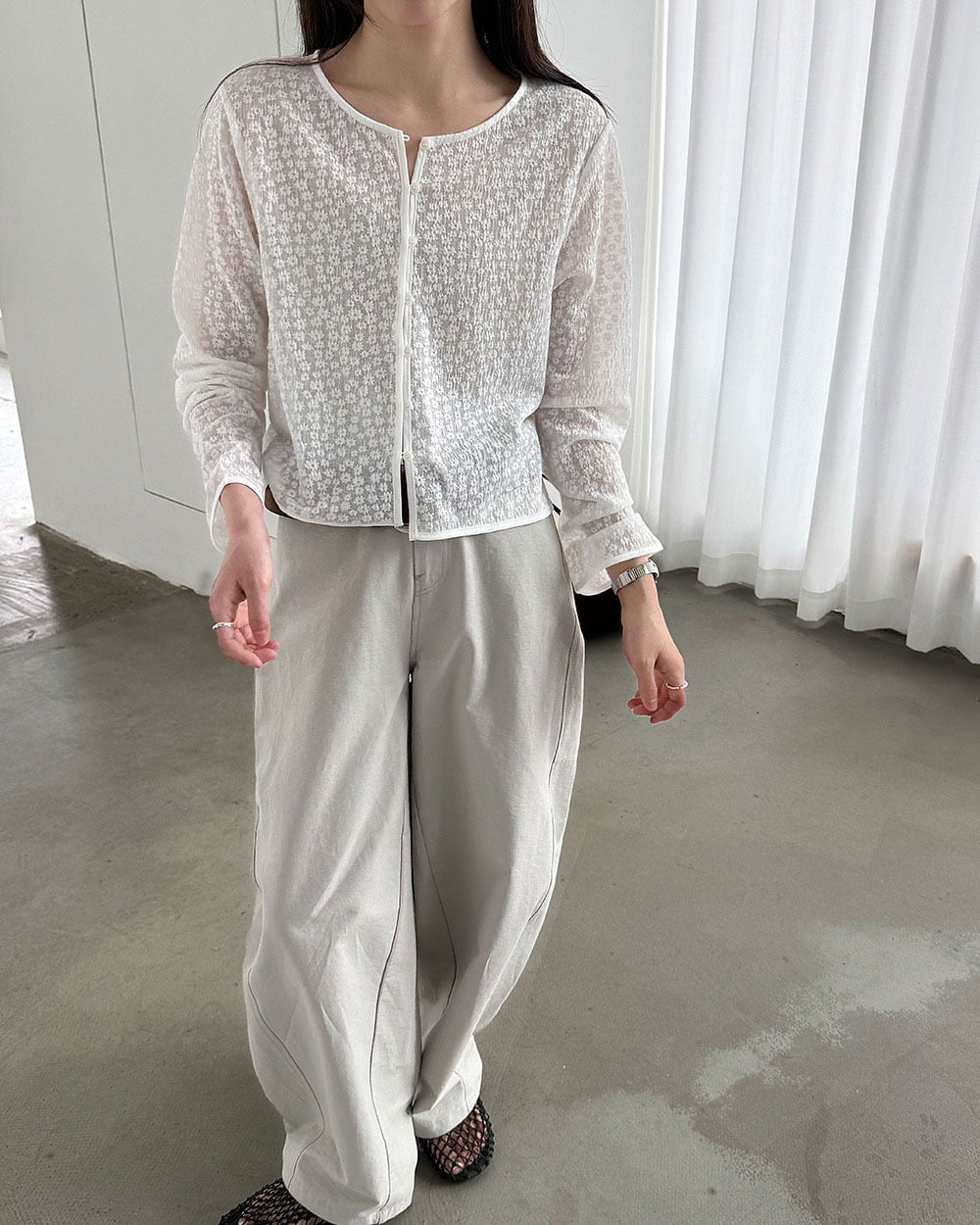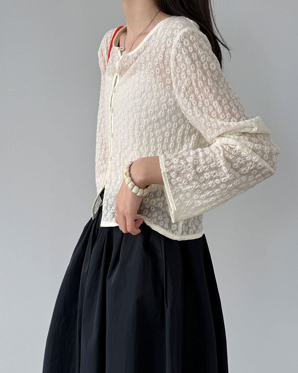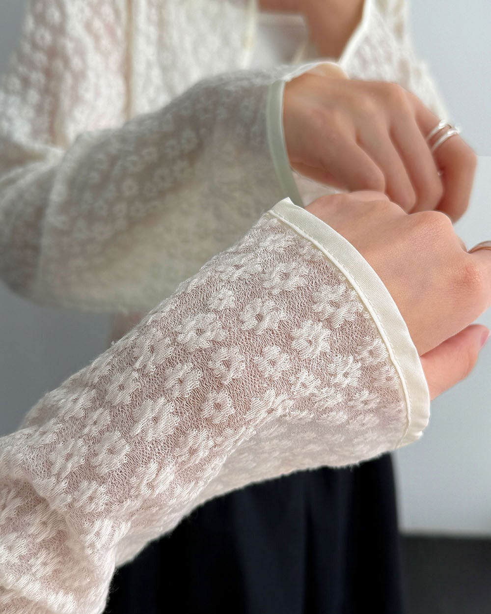 *モデル身長163m/着用サイズM 【Size】 M 肩幅41cm/胸囲92cm/袖丈58cm/身丈44cm L 肩幅43cm/胸囲96cm/袖丈59cm/身丈45cm 【Color】 Ivory/Beige 【Material】 ナイロン55%/綿35%/ポリウレタン10% ■お届けについて こちらの商品は海外より直接発送となる為、ご注文完了から2~4週間前後で発送致します。 (タイミングによっては 商品在庫切れにより注文キャンセルとさせていただく恐れもございますので、予めご了承くださいませ。) ■注意事項 ・商品を使用前に、タグ等に記載されている「洗濯表示」を必ずご確認ください。 ・手作業による計測のため実際のサイズと1~3cm程度の誤差がある場合がございます。 ・こちらは海外製品のため縫製が甘いことやしわがついていることがありますが、重大な不良品に該当しない場合返品対象外となります。 ・仕入れ工場が変更になることがあるため、商品の使用が若干異なる場合がございます。 ・商品写真は照明やお使いのスクリーンの設定によって実物の素材感や色味とは違って見える場合がございます。 ・イメージ違いやサイズ交換等、お客様都合による返品・交換は原則承っておりません。 −−−−−−−−−−−−−−−− ご購入前にこちらをお読みください https://leonie.official.ec/about −−−−−−−−−−−−−−−−−−−−−−−− 新作などその他の商品はTOPページをご覧ください https://leonie.official.ec/ −−−−−−−−−−−−−−−−−−−−−−−− 人気の商品を集めたHOTアイテムはこちら https://leonie.official.ec/categories/4475668 −−−−−−−−−−−−−−−−−−−−−−−− [O712]