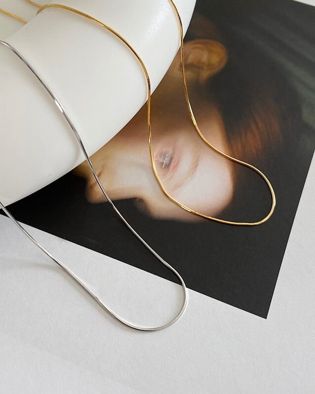 Silver925素材のスネークチェーンネックレスは1つでつけてコーデにこなれ感を演出してくれます。