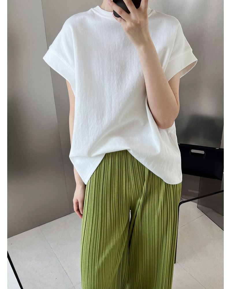 *モデル身長166cm/着用サイズM 【Size】 M 肩幅52cm/胸囲94cm/袖丈21cm/裾周り106cm/着丈57cm L 肩幅54cm/胸囲98cm/袖丈22cm/裾周り110cm/着丈58cm 【Color】 White/Purple/Black 【Material】 綿95%/ナイロン5% ■お届けについて こちらの商品は海外より直接発送となる為、ご入金から2~4週間前後で発送致します。 (タイミングによっては 商品在庫切れにより注文キャンセルとさせていただく恐れもございますので、予めご了承くださいませ。) ■注意事項 ・手作業による計測のため実際のサイズと1~3cm程度の誤差がある場合がございます。 ・こちらは海外製品のため縫製が甘いことやしわがついていることがありますが、重大な不良品に該当しない場合返品対象外となります。 ・仕入れ工場が変更になることがあるため、商品の使用が若干異なる場合がございます。 ・商品写真は照明やお使いのスクリーンの設定によって実物の素材感や色味とは違って見える場合がございます。 ・イメージ違いやサイズ交換等、お客様都合による返品・交換は原則承っておりません。 ---------------- ご購入前にこちらをお読みください https://leonie.official.ec/about ------------------------ 新作などその他の商品はTOPページをご覧ください https://leonie.official.ec/ ------------------------ 人気の商品を集めたHOTアイテムはこちら https://leonie.official.ec/categories/4475668 ------------------------