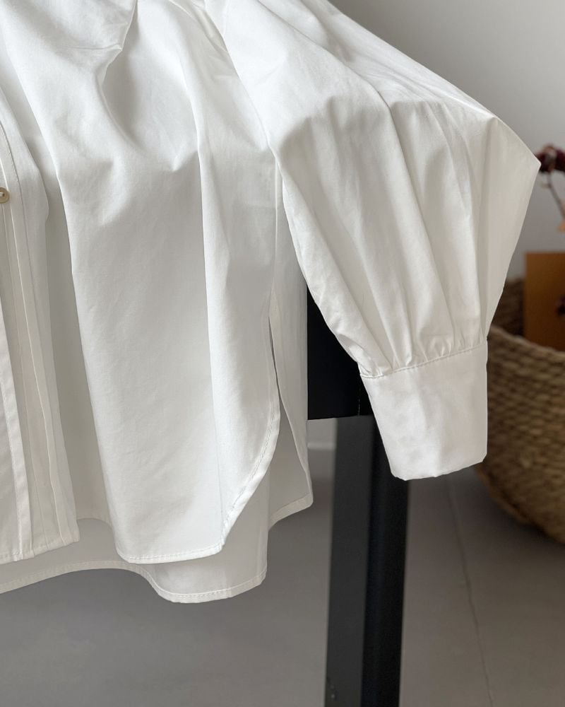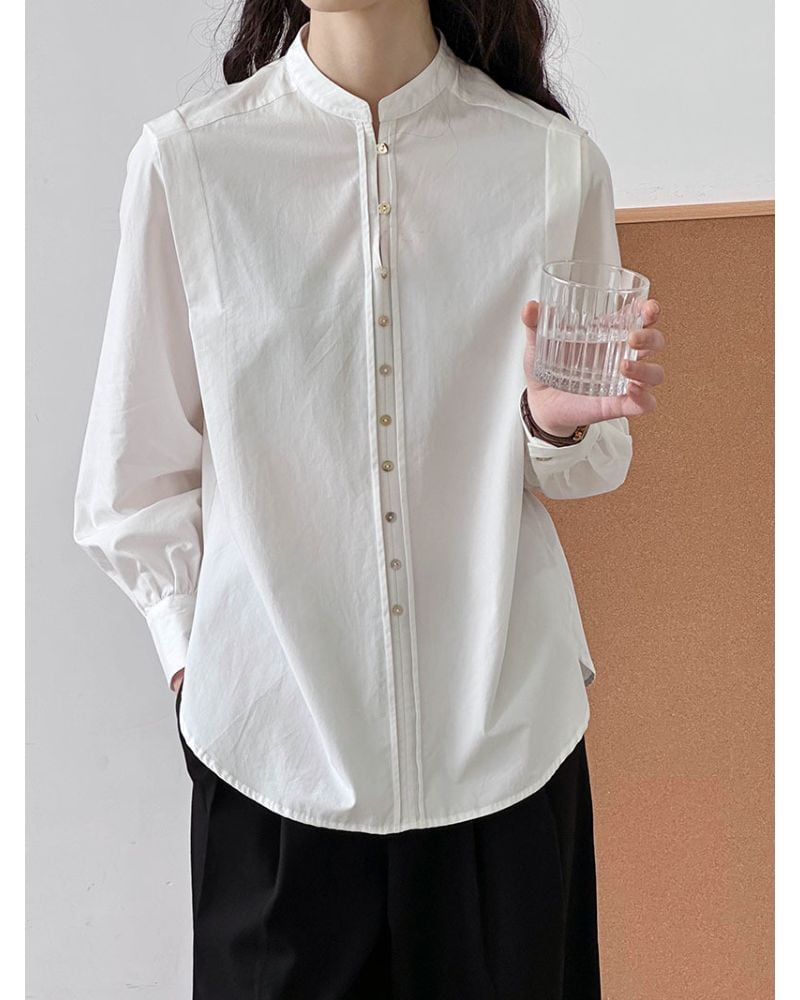 Band Collar Seem Tuck Shirt N069
