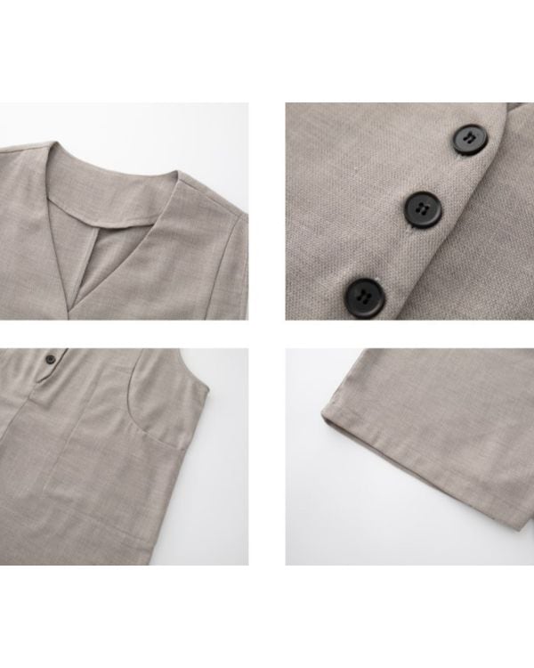 *モデル身長162cm/着用サイズM 【Size】 S 肩幅40cm/胸囲115cm/ヒップ125cm/着丈86cm M 肩幅41cm/胸囲119cm/ヒップ129cm/着丈88cm 【Color】 Oatmeal/Gray 【Material】 ポリエステル81%/レーヨン8%/アセテート3%/指定外繊維(テンセル)3%/ウール3%/ポリウレタン2% ■お届けについて こちらの商品は海外より直接発送となる為、ご入金から2~4週間前後で発送致します。 (タイミングによっては 商品在庫切れにより注文キャンセルとさせていただく恐れもございますので、予めご了承くださいませ。) ■注意事項 ・商品を使用前に、タグ等に記載されている「洗濯表示」を必ずご確認ください。 ・手作業による計測のため実際のサイズと1~3cm程度の誤差がある場合がございます。 ・こちらは海外製品のため縫製が甘いことやしわがついていることがありますが、重大な不良品に該当しない場合返品対象外となります。 ・仕入れ工場が変更になることがあるため、商品の使用が若干異なる場合がございます。 ・商品写真は照明やお使いのスクリーンの設定によって実物の素材感や色味とは違って見える場合がございます。 ・イメージ違いやサイズ交換等、お客様都合による返品・交換は原則承っておりません。 −−−−−−−−−−−−−−−− ご購入前にこちらをお読みください https://leonie.official.ec/about −−−−−−−−−−−−−−−−−−−−−−−− 新作などその他の商品はTOPページをご覧ください https://leonie.official.ec/ −−−−−−−−−−−−−−−−−−−−−−−− 人気の商品を集めたHOTアイテムはこちら https://leonie.official.ec/categories/4475668 −−−−−−−−−−−−−−−−−−−−−−−− [N399]