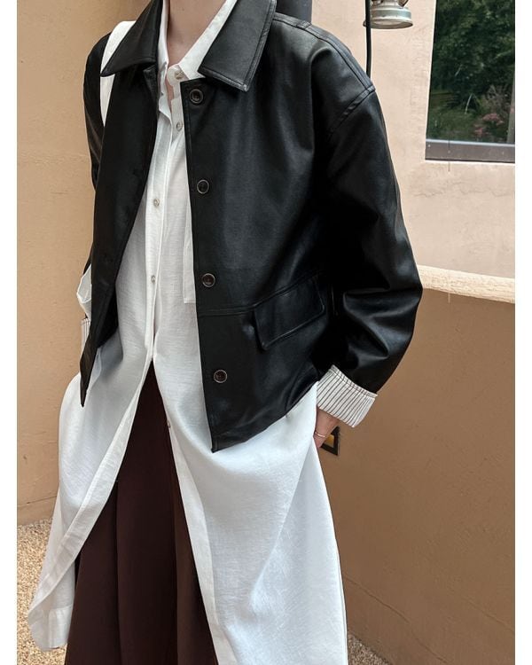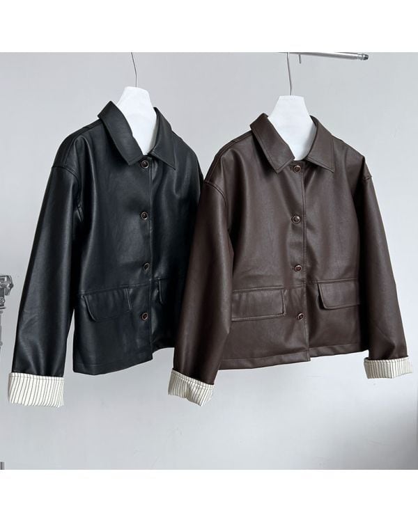 *モデル身長168cm/着用サイズM 【Size】 M 肩幅52cm/胸囲104cm/袖丈57cm/着丈58cm L 肩幅54cm/胸囲108cm/袖丈58cm/着丈59cm 【Color】 Brown/Black 【Material】 合成皮革100% ■お届けについて こちらの商品は海外より直接発送となる為、ご入金から2~4週間前後で発送致します。 (タイミングによっては 商品在庫切れにより注文キャンセルとさせていただく恐れもございますので、予めご了承くださいませ。) ■注意事項 ・商品を使用前に、タグ等に記載されている「洗濯表示」を必ずご確認ください。 ・手作業による計測のため実際のサイズと1~3cm程度の誤差がある場合がございます。 ・こちらは海外製品のため縫製が甘いことやしわがついていることがありますが、重大な不良品に該当しない場合返品対象外となります。 ・仕入れ工場が変更になることがあるため、商品の使用が若干異なる場合がございます。 ・商品写真は照明やお使いのスクリーンの設定によって実物の素材感や色味とは違って見える場合がございます。 ・イメージ違いやサイズ交換等、お客様都合による返品・交換は原則承っておりません。 −−−−−−−−−−−−−−−− ご購入前にこちらをお読みください https://leonie.official.ec/about −−−−−−−−−−−−−−−−−−−−−−−− 新作などその他の商品はTOPページをご覧ください https://leonie.official.ec/ −−−−−−−−−−−−−−−−−−−−−−−− 人気の商品を集めたHOTアイテムはこちら https://leonie.official.ec/categories/4475668 −−−−−−−−−−−−−−−−−−−−−−−− [N604]