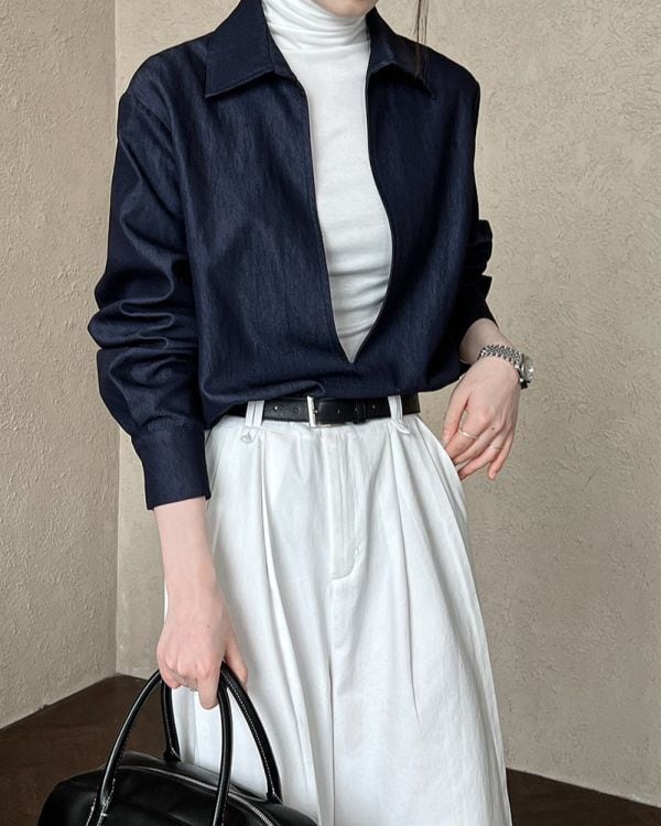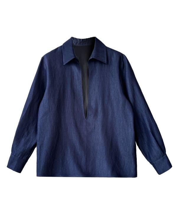 Deep V-neck Denim Shirt