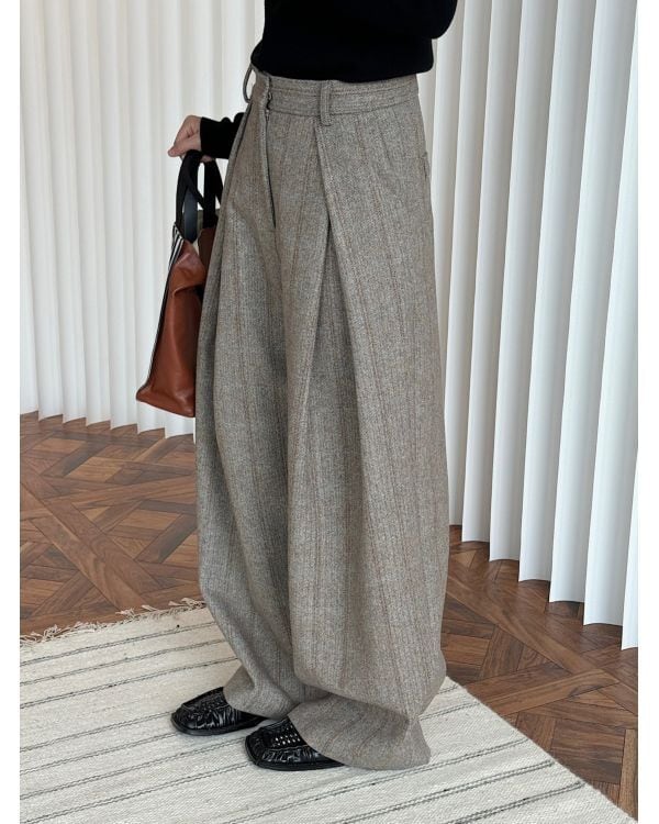 *モデル身長162cm/着用サイズM 【Size】 S ウエスト69cm/ヒップ103cm/パンツ丈102cm M ウエスト73cm/ヒップ105cm/パンツ丈104cm L ウエスト77cm/ヒップ107cm/パンツ丈106cm 【Color】 Brown/Gray 【Material】 ウール80%/ポリエステル20% ■お届けについて こちらの商品は海外より直接発送となる為、ご入金から2~4週間前後で発送致します。 (タイミングによっては 商品在庫切れにより注文キャンセルとさせていただく恐れもございますので、予めご了承くださいませ。) ■注意事項 ・商品を使用前に、タグ等に記載されている「洗濯表示」を必ずご確認ください。 ・手作業による計測のため実際のサイズと1~3cm程度の誤差がある場合がございます。 ・こちらは海外製品のため縫製が甘いことやしわがついていることがありますが、重大な不良品に該当しない場合返品対象外となります。 ・仕入れ工場が変更になることがあるため、商品の使用が若干異なる場合がございます。 ・商品写真は照明やお使いのスクリーンの設定によって実物の素材感や色味とは違って見える場合がございます。 ・イメージ違いやサイズ交換等、お客様都合による返品・交換は原則承っておりません。 −−−−−−−−−−−−−−−− ご購入前にこちらをお読みください https://leonie.official.ec/about −−−−−−−−−−−−−−−−−−−−−−−− 新作などその他の商品はTOPページをご覧ください https://leonie.official.ec/ −−−−−−−−−−−−−−−−−−−−−−−− 人気の商品を集めたHOTアイテムはこちら https://leonie.official.ec/categories/4475668 −−−−−−−−−−−−−−−−−−−−−−−− [N652]